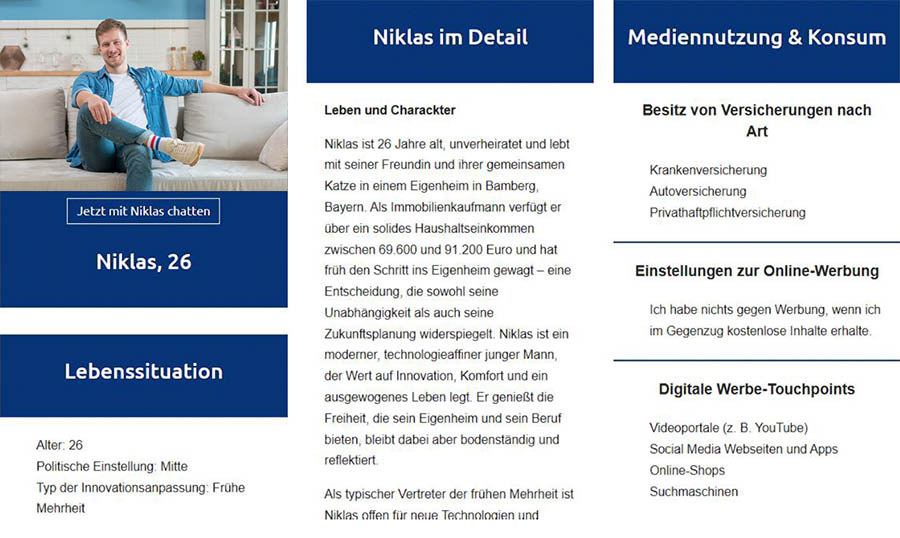 Kommunikation & Ansprache: Visuell, mobil, klar. Wer Niklas erreichen will, muss auf unnötige Formalitäten verzichten, Nutzwert liefern und digital denken. Er will gescannt statt gelesen werden – auf Augenhöhe, nicht belehrend.